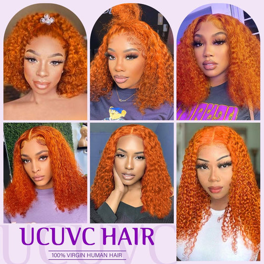 UCUVIC Glueless Wigs Human Hair Pre Plucked Pre Cut Wear And Go Curly 5x5 Deep Wave Bob Wig Human Hair Lace Front Closure Wigs For Black Women 200 Density Curly Wig Glueless Wear And Go Ginger 14 Inch
