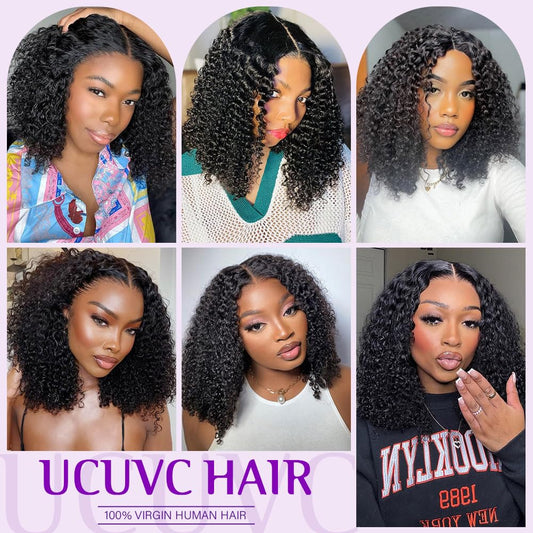 UCUVIC Curly Bob Wig Human Hair 5x5 Wear And Go Glueless Wigs Human Hair Pre Plucked Pre Cut Deep Wave Lace Front Closure Wigs For Black Women 200 Density Curly Wig Glueless Wear And Go Black 12 Inch