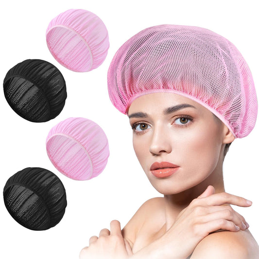 Dimeho 4 Pcs Mesh Sleep Bonnets Night Sleep Cap Hair Net for Sleeping Wig Cap Sleep Caps for Women(Pink/Black
