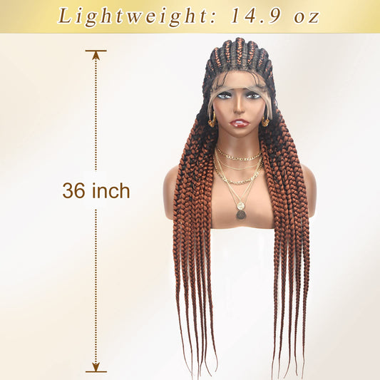 Alebery 36" Full Lace Knotless Box Braided Wigs for Black Women Knotless Box Braids Lace Front Wig with Baby Hair Lightweight Synthetic Lace Frontal Light Brown Cornrow Twisted Braided Wigs (1B/27)
