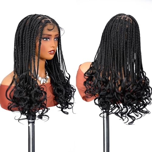 SUPERNOVA Knotless Braided Wigs With Curly End Synthetic Hair 13x7 Lace Front Box Braids Wig For Black Women Half Back Double Lace Square Braided Wig With Baby Hair 18 Inch