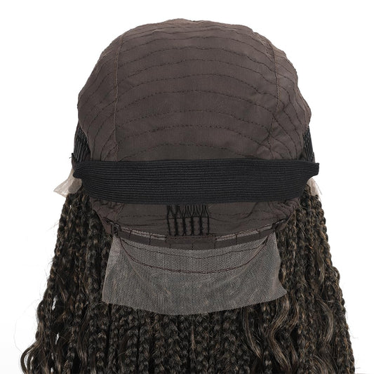 Fancy Hair Braided Wig Cornrow with Curly Hair Wig HD Lace Front Wig with Baby Hair Pre Plucked Glueless Transparent 13x4 Inch Brown Mixed Blonde Wig for Black Women