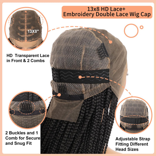 Brinbea 36'' 13X8" HD Lace Front Knotless Braided Wigs for Women Box Braid Wig with Baby Hair Braided Lace Front Wigs Premium Synthetic Braid Wig Natural Long Black
