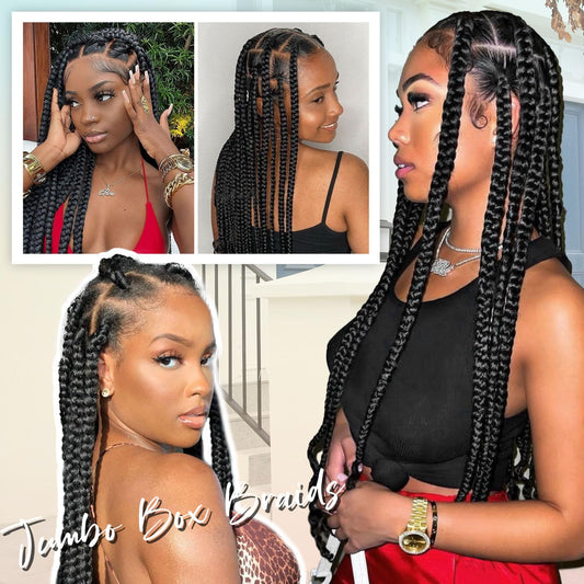 Lady Miranda Full Lace Jumbo Braided Wigs for Black Women Knotless Box Braid Wig with Baby Hair 32" Glueless Wigs Jumbo Box Braids Lace Front Synthetic Wig