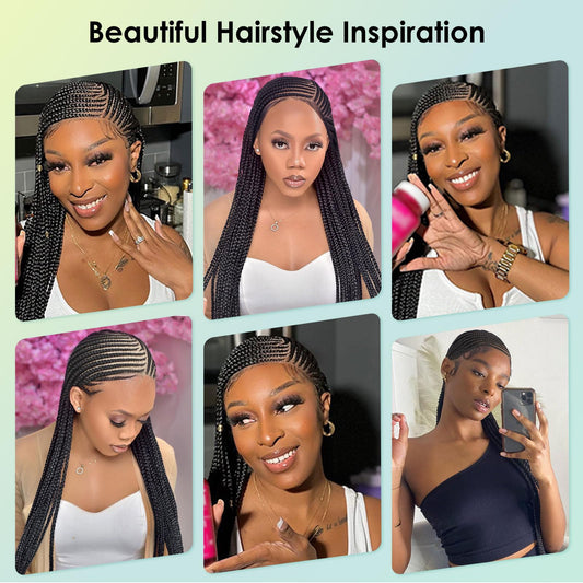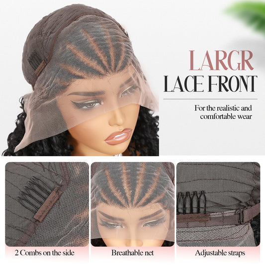 Fancy Hair Cornrow with Curly Hair Wig HD Lace Front Braided Wig with Baby Hair Pre Plucked Glueless Transparent 13x4 Inch Lace Frontal Wig for Black Women