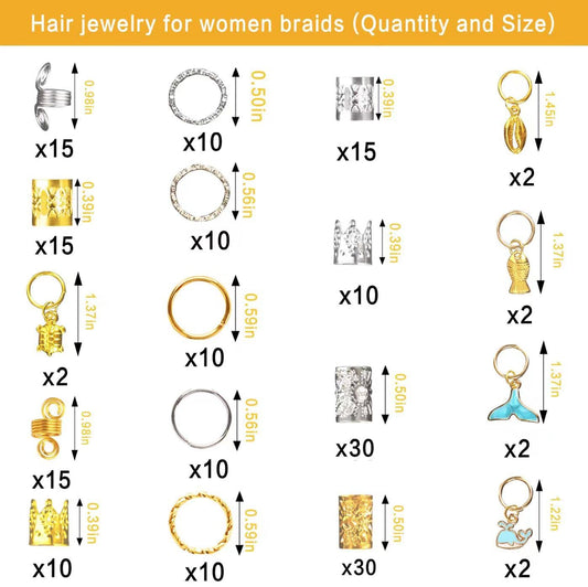 Nafaboig 200PCS Hair Jewelry for Braids, dreadlock accessories, Loc Hair, Braid Rings Clips Beads Braiding Cuffs Charms Decoration Girls Women
