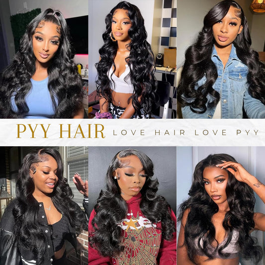 PYY 13x4 HD Lace Front Wig Human Hair, Body Wave Wig with Pre-Plucked Natural Hairline, 250 Density, Raw Human Hair Soft, Full, Glueless Wig for Women, 28 Inch Natural Color