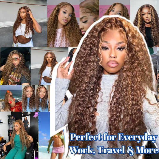 PYY 4/27 Highlight Glueless Deep Wave Wig Human Hair, 5x5 HD Lace Wear and Go Pre Plucked Pre Cut Wig for Women, Beginner Friendly, Natural Hairline, No Glue Needed 30Inch