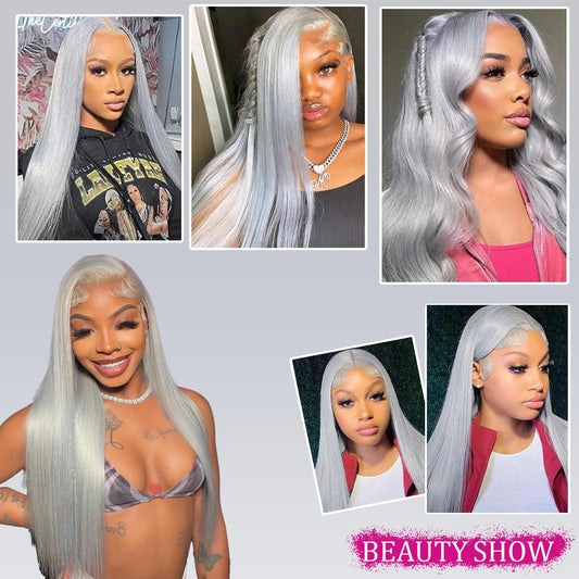 30 Inch Straight Grey Lace Front Wigs Human Hair 13x4 Silver Grey HD Lace Front Wig Human Hair Wear and Go Glueless Gray Wigs Pre Plucked with Baby Hair Grey Hd Lace Frontal Wig For Black Women