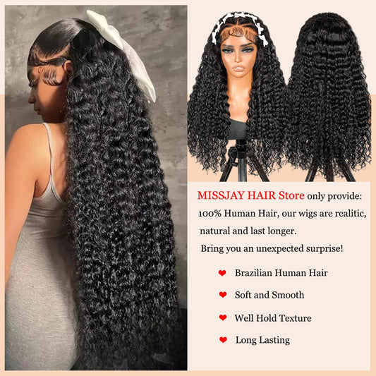 MISSJAY Deep Wave Lace Front Wig Human Hair 38 Inch 13x6 Deep Curly Wigs Human Hair 200% Density Glueless Brazilian Hair Deep Wave Wig Pre Plucked with Baby Hair Natural Color for Black Women