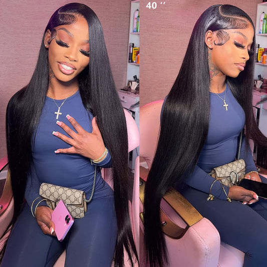 40 inch Wig Human Hair 13x6 Full HD Lace Front Wigs Human Hair Real Skinlike HD Lace Wig Pre Plucked 0.10mm Ultra-thin Lace Vivid Clean Hairline Bleached Tiny Knots 200 Density Straight Wigs for Women