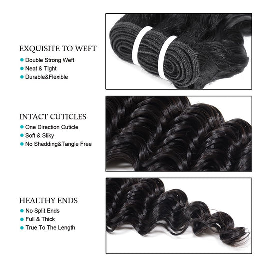 JTdebade Deep Wave Human Hair bundles 10 Inch 12A Grade Brazilian Human Hair 100% Virgin Weave Bundles Human Hair for Black Women (10'' 10'' 10'' 10'')