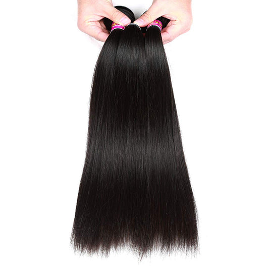 PINJUOO Straight Bundles Human Hair 16 18 20 inch 100% Unprocessed Virgin Remy Hair Bundles Weave 3 Bundles Raw Hair Extensions Natural Color for Women