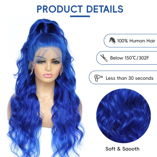 Boumon Blue Lace Front Wig Human Hair 13x4 HD Lace Front Wigs Human Hair Pre Plucked Body Wave 200 Density Human Hair Wig 32 Inch