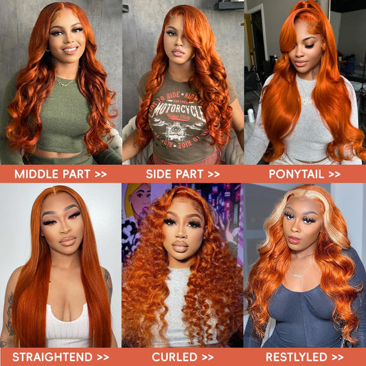 Ginger Lace Front Wig Human Hair Pre-Plucked 200% Density Body Wave HD Lace Frontal Wig 88J Colored Ginger Human Hair 13x4 Lace Front Wig Glueless 28 Inch