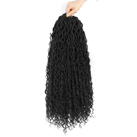 Col Bling Goddess Locs Crochet Hair 18 Inch 8 Packs Faux Locs Crochet Hair for Women Pre Looped Crochet Boho Goddess Faux Locs Crotchet Hair with Curly Ends #1B
