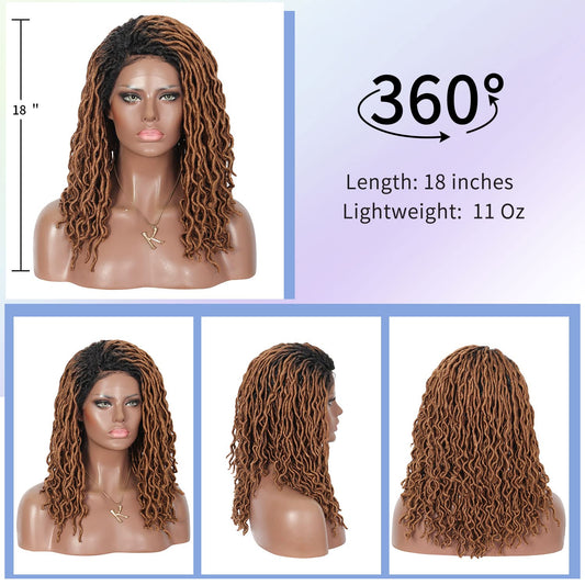 Kalyss 18" Side Part Locs Wigs Dreadlock Wigs for Black Women Lace Front Braided Wig with Baby Hair Curly Locs Wigs Japan-made Synthetic Braided Twist Wigs(Ombre Black to Brown)