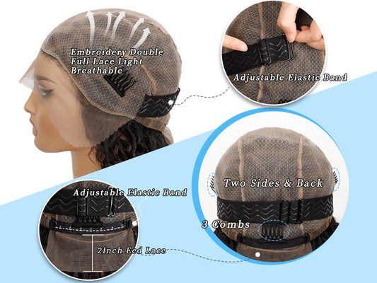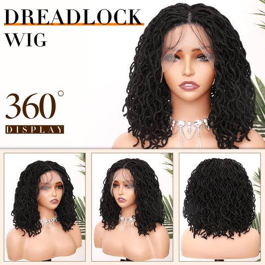 Lady Miranda 14 Inch Full Lace Dreadlock Wig with Baby Hair 150% Density Pre-Plucked Braided Wig Natural Black Faux Locs Wig Braided Wigs for Black Women Knotless Short Twist Wig for Women and Men