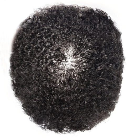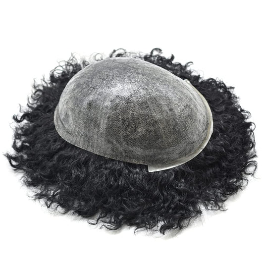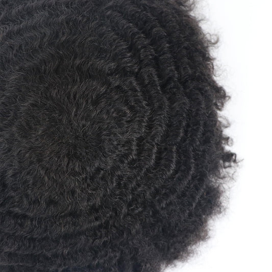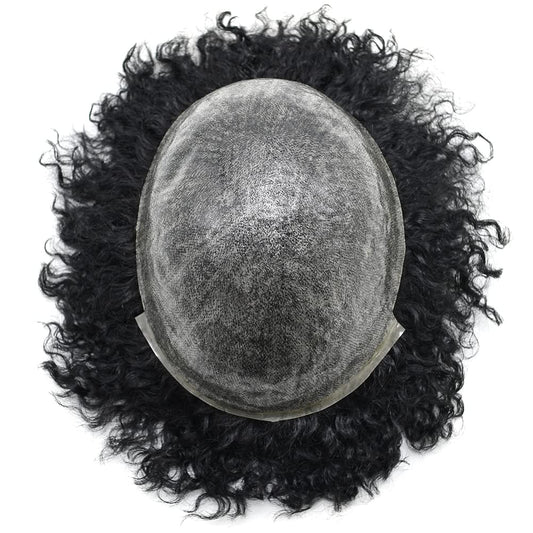 lumeng Male Afro Curly Toupee Mens Wig Braid 12mm Wave 360 Curly Men Hair Unit 1B Off Black 100% Human Hair piece 8x10inch Men's Hair Replacement Systems Transparent HD Swiss Lace