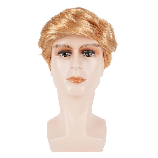 TOPHR Blonde Wig Men Short Straight 6 Inch Heat Resistant Synthetic Blonde Wig for men Daily Costumes or Halloween Wear