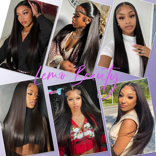 Lemo beauty Straight Human Hair Wigs 13x4 Hd Lace Front Wigs Human Hair for Black Women 12A Double Drawn Brazilian Virgin Human Hair Transparent Lace Pre Plucked&Pre Bleached Lace Front Wigs 220%