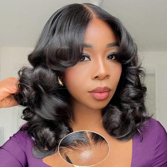 Douyin Wear and Go Glueless Wigs Human Hair Pre Plucked Pre Cut Body Wave 2x6 Hd Lace Closure 16 Inch Drawstring Middle Part Bob Wig Human Hair Short 180 Dentisty Lace Front Wigs for Black Women