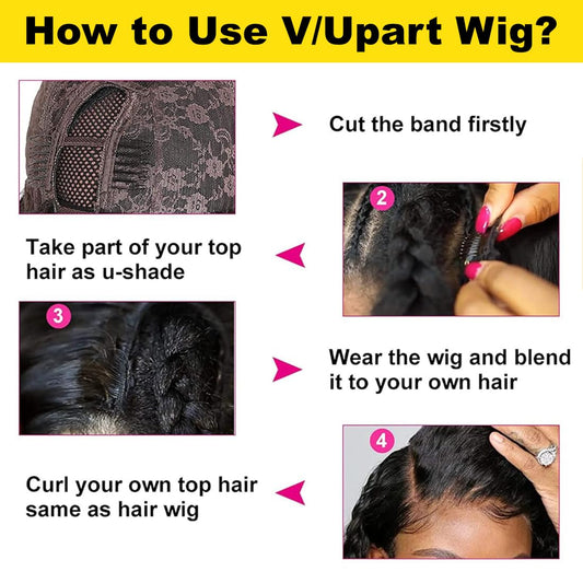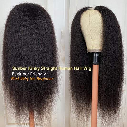 Sunber V Part Wig Human Hair Glueless Wig Kinky Straight Upgrade No Leave Out Vpart Kinky Straight Wigs 150% Density Glueless Clip in Half Wigs No Glue No Sew in Beginner Friendly 24Inch