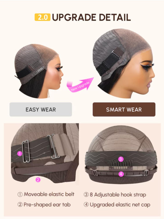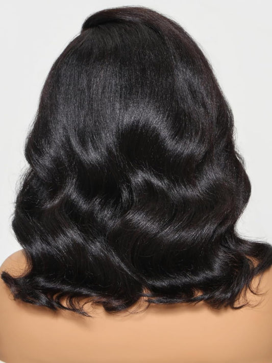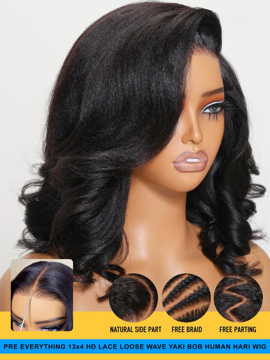 Sunber Put On and Go Glueless Light Yaki Loose Wave Bob Human Hair Wigs Pre Plucked Pre Bleached Human Hair Bye Bye Knots Pre Cut 13x4 HD Lace Front Lace with Elastic Drawstring Pre Everything 12Inch