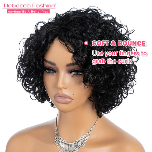 Rebecca Fashion Short Curly Human Hair Wigs for Black Women Cute Curly Bob Wig Side Part Non Lace Glueless Wigs Brazilian Remy Natural Looking Natural Color