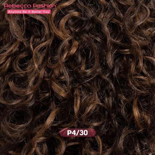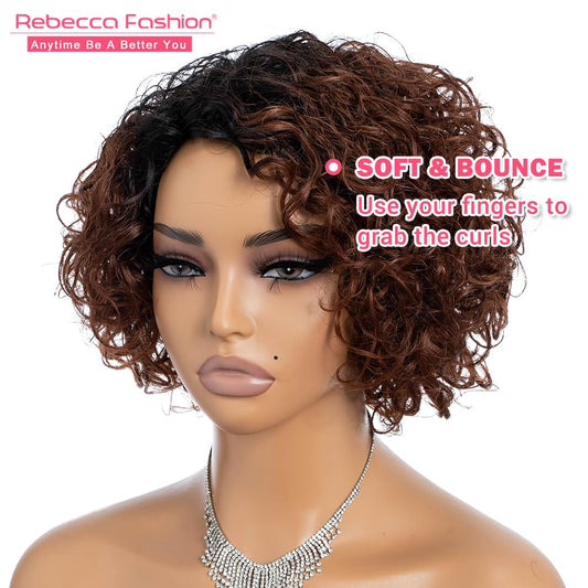 Rebecca Fashion Short Curly Human Hair Wigs for Black Women Side Part Cute Curly Bob Wig Brazilian Remy Non Lace Glueless Wigs Natural Looking Ombre Brown Color