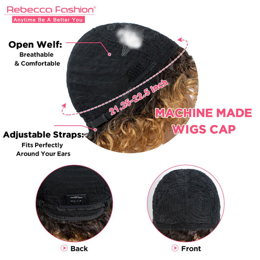 Rebecca Fashion Short Curly Human Hair Wigs for Black Women Cute Curly Bob Wig Side Part Non Lace Glueless Wigs Brazilian Remy Natural Looking Ombre Natural Color to Honey Brown