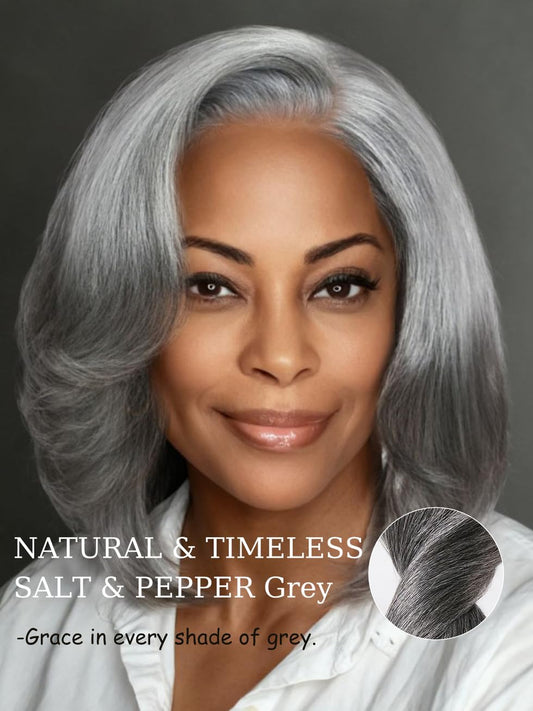 UNICE Side Part Blowout Layered Bob Human Hair Wig 6.5x5x1.5 Lace Salt and Pepper Grey Glueless Wigs Pre Plucked Pre Cut Lace Put on and Go 8 Inch