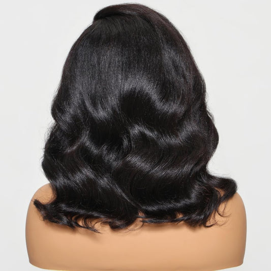 UNICE 12 inch Light Yaki Loose Body Wave Bob Wig human Hair with Below Out Bangs 13X4 HD Lace Front Glueless Wigs Human Hair Pre Plucked Pre Cut Lace Bleached Knots Ready to Wear Black Color