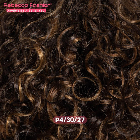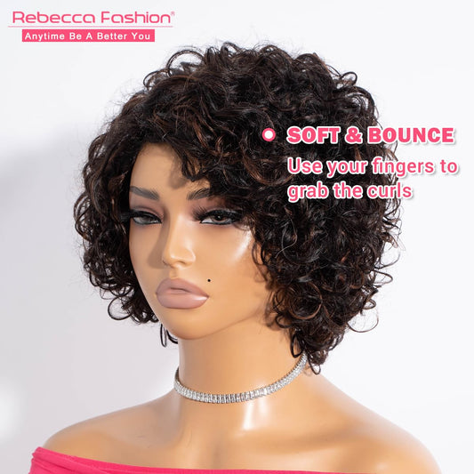 Rebecca Fashion Short Curly Human Hair Wigs for Black Women Side Part Cute Curly Bob Wig Brazilian Remy Non Lace Glueless Wigs Natural Looking Highlight Brown Blonde Color