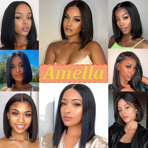 Amella Hair U Part Wig Human Hair Straight Bob Wigs For Black Women 10inch Brazilian Remy Hair Short Bob Human Hair Wigs Clip in U Part Wig Human Hair Extensions Natural Black Color