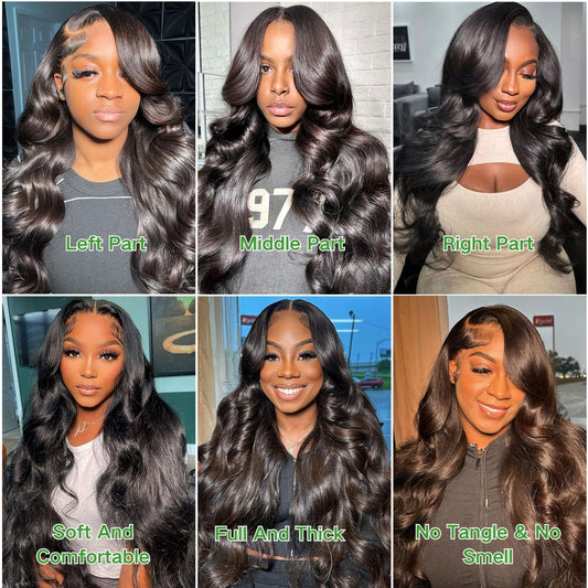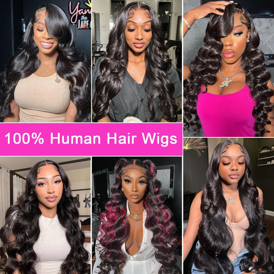 Niojoo 28 Inch Body Wave Lace Front Wigs Human Hair Pre Plucked 180% Density 13x4 HD Transparent Lace Frontal Glueless Wigs Human Hair Wigs for Women Natural Hairline With Baby Hair
