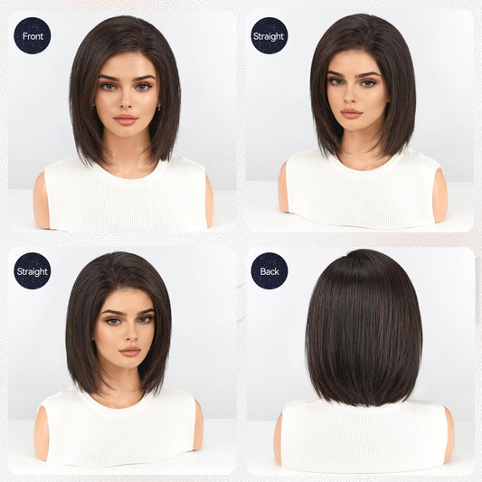 starluck Human Hair Wig Lace Front Wigs Real Human Hair Wigs For Women Wig Side Part 6"*5"*2" HD Lace Dark Brown 12 Inch Realistic and Natural for Daily Party Use