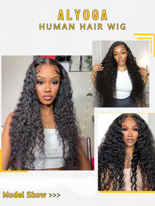 ALYOGA 13x6 Deep Wave Lace Front Wigs Human Hair 200 Density Pre Plucked with Baby Hair Water Wave Wigs for Women Glueless Natural Color 32 inch