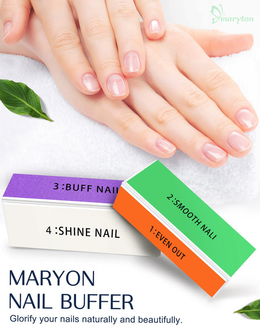 Maryton Professional Nail Buffer Block - Ultimate Shine Nail Buffing Block with 4 Way Buffing Methods, Smooth & Buff & Shine All-in-one Buffer for Optimum Natural Nail Care, 2 Count