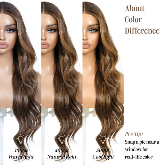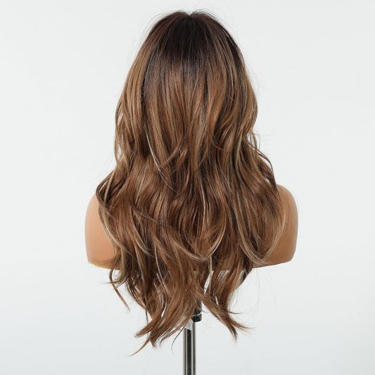 Tumhorn Long Brown Layered Wig with Curtain Bangs for Women Highlight Brown Mixed Blonde Wavy Wig Natural Looking Heat Resistant Synthetic Wigs for Daily Party Use