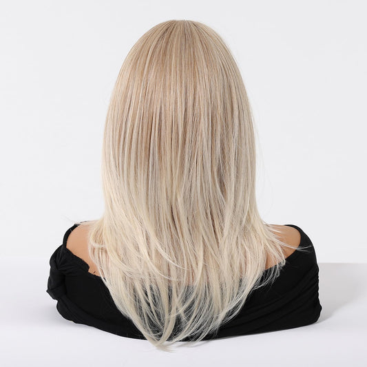 Tumhorn Long Layered Blonde Wigs for Women Synthetic Hair Wig with Bangs Natural Wavy Heat Resistant Wigs for Daily Party Use