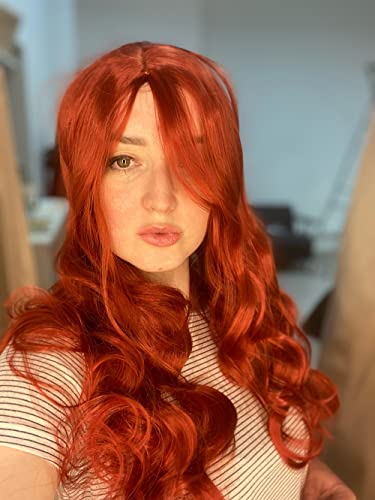 KKbeauty 28” Jessica Rabbit Long Wavy Copper Red Cosplay Wig Spiral Curly Anime Heat Resistant Hair for Women