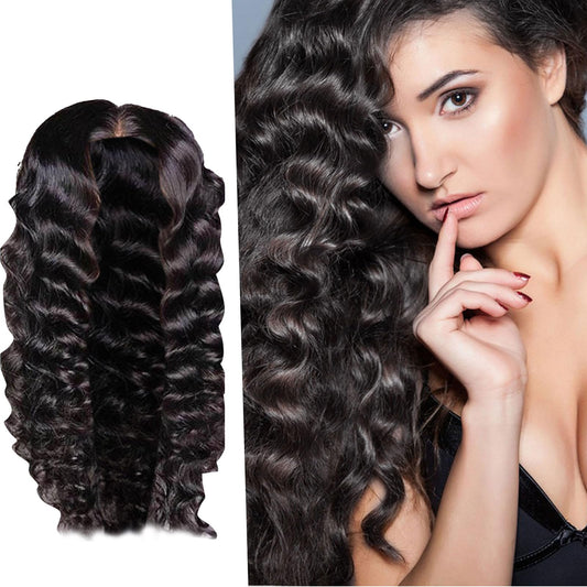 YruYptpaln Deep Wave Lace Front Wigs Unice Hair Glueless Wigs Wet and Wavy Lace Front Wigs Middle Part Wigs for Black Women(Black, One Size)