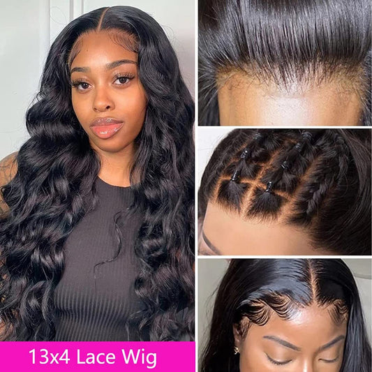 YruYptpaln Body Wave Lace Front Wigs Glueless Wigs Pre Plucked Pre Cut Wet and Wavy Lace Front Wigs U Part Wigs for Graduation Ceremony(Black, 18 Inch)