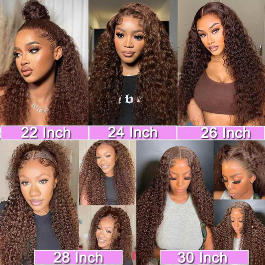 Chocolate Brown Lace Front Wigs Human Hair Pre Plucked 180 Density Brazilian Wet and Wavy Human Hair Wigs for Black Women Colored Curly 13x4 Lace Frontal Wig (Brown Color, 24 Inch)