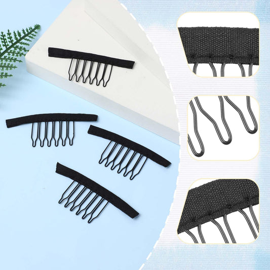 24 pcs/lot Wig Combs for Making Wig Caps 7-teeth Wig Clips Steel Teeth with Cloth Wig Combs for Hairpiece Caps Wig Accessories Tools Wig Clips for Wig (Black)