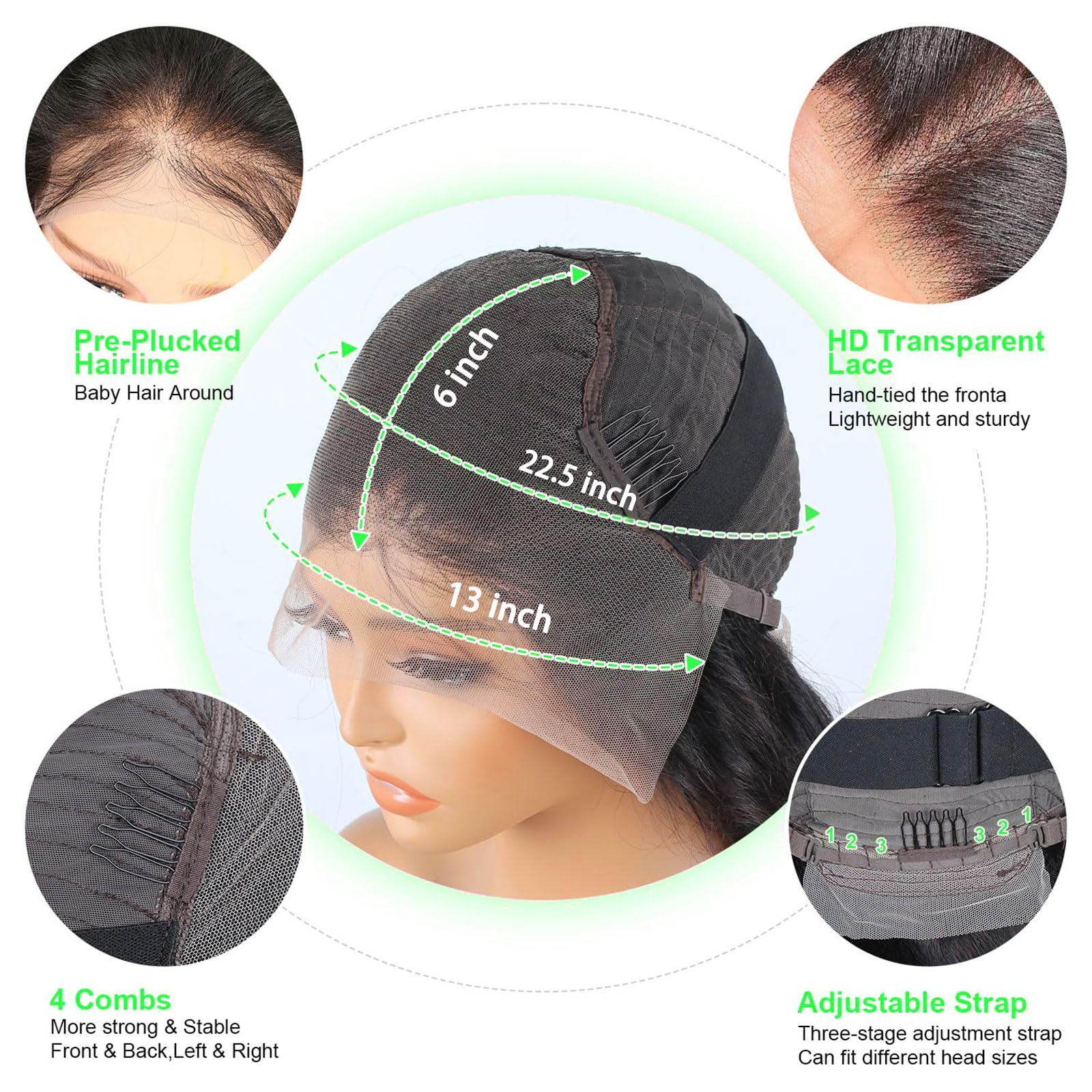 - 13x6 Lace Front Wigs Human Hair Quality: 13x6 HD deep wave lace front wigs human hair glueless lace front wigs, 100% Brazilian virgin human hair wigs are cut from young donors,full & healthy hair ends. Our deep curly human hair wig are famous for its softness, smoothness, and resistance to tangling, You can restyle it by dyeing or curling it , also can part in the middle, side part, or weave your favorite braid, do any hairstyle you want,which elevate your look with effortless glamour and a natural feel.
