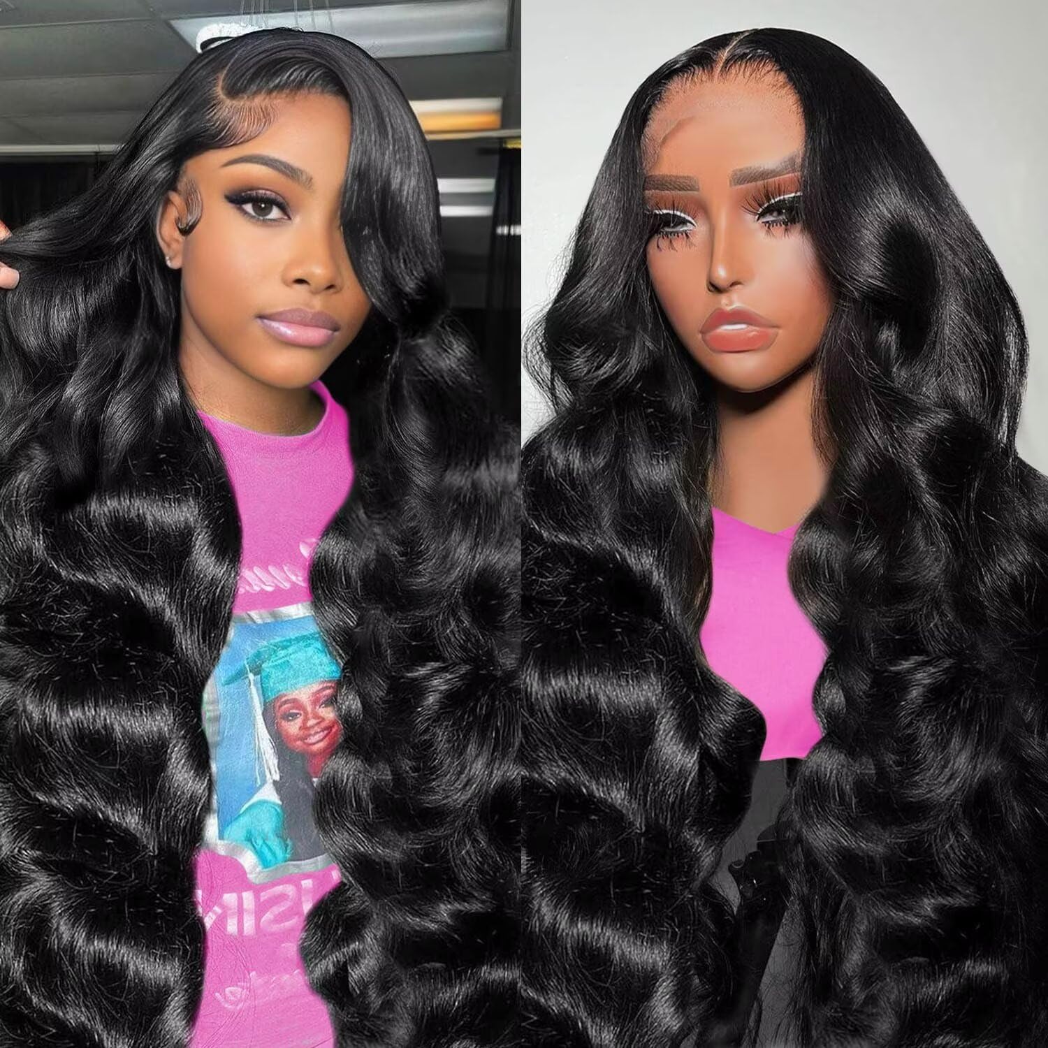 13x6 Lace Front Wigs Human Hair Pre Plucked 200% Density Body Wave HD Lace Front Wigs Human Hair Transparent Frontal Glueless Wigs Virgin Human Hair with Baby Hair for Women Natural Black 34 Inch
