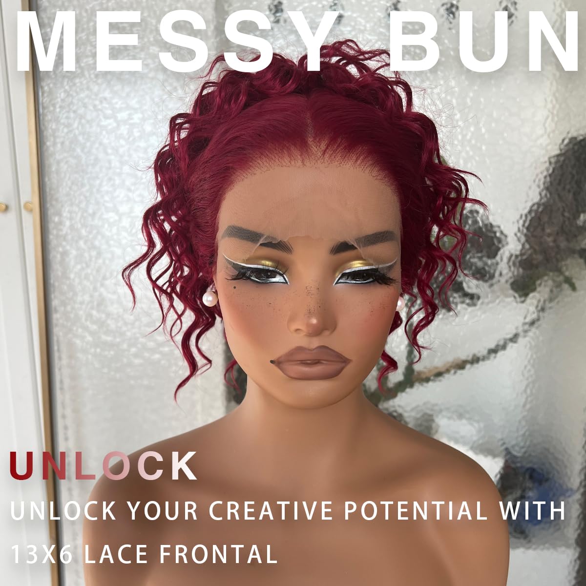 26Inch 99j Burgundy Deep Curly Lace Front Wig for Black Women, 13x6 HD Glueless Curly Lace Front Wigs Pre-Plucked, 200 Density Similar Human Hair Synthetic Lace Frontal Wig, 26 inch #Burgundy