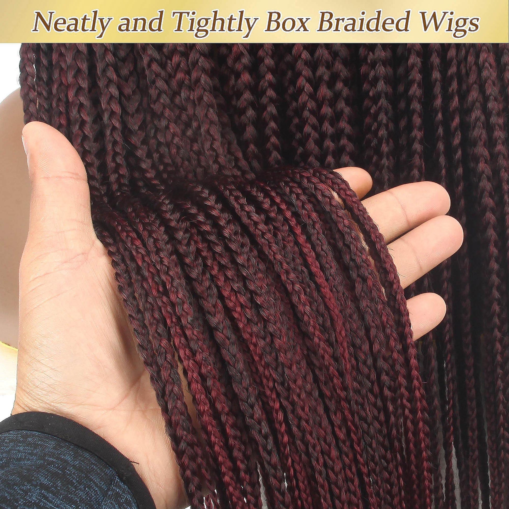 - 【Takes a Few Minutes to Wear】: Fully hand braided Full lace knotless box braided wigs easy install and looks like you've been styling for hours. For busy ladies, this is the best way to save time, away from headaches and backache. This knotless box braided lace wig give you a unique style and you will get compliments every time you wear it! All braided lace front wigs are hand braided by professional styling designer, every braids is neatly and tightly done, natural looking as your real hair.